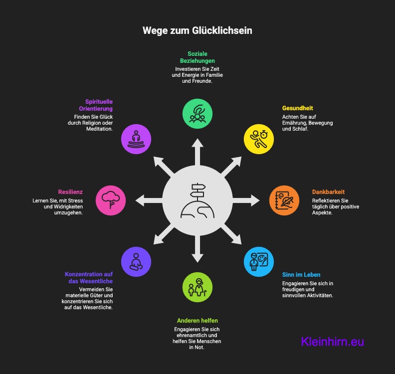 Basierend auf den Erkenntnissen der Glücksforschung lassen sich folgende Wege zum Glücklichsein ableiten: